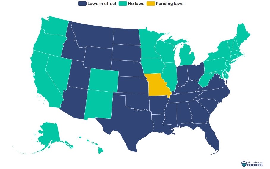 korlátozó államok az USA-ban (Forrás: AllAboutCookies)