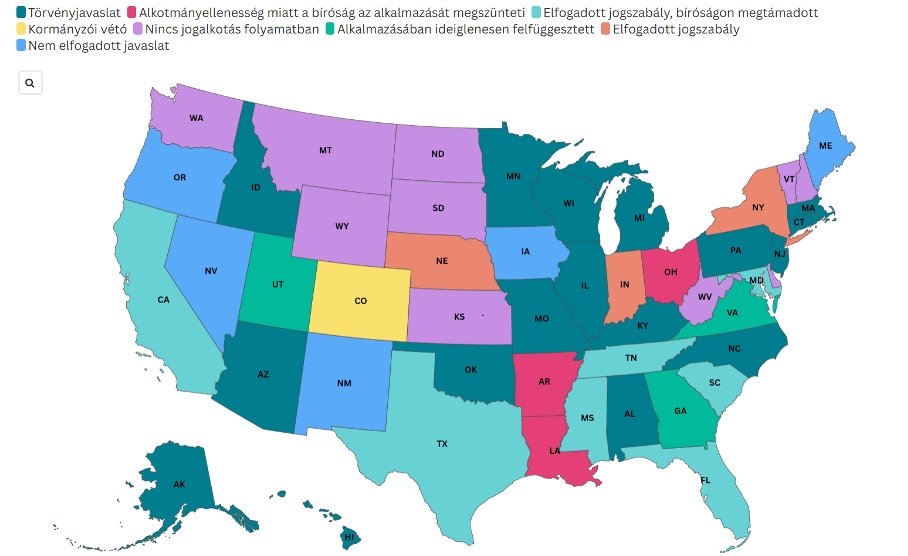 - Felfüggesztések: három államban (Georgia, Utah és Virginia) a bíróság az eljárás idejére már fel is függesztette a jogszabály alkalmazását.