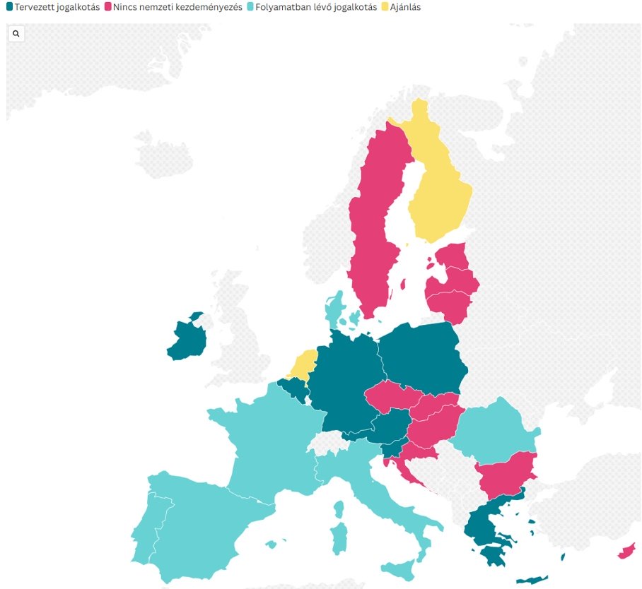 - Ahol tervezik a jogalkotást: hét további országban – Írországban, Belgiumban, Németországban, Ausztriában, Szlovéniában, Lengyelországban és Görögországban – a kormányzati kommunikáció és a sajtóhírek alapján szintén napirenden van a terület szabályozása.